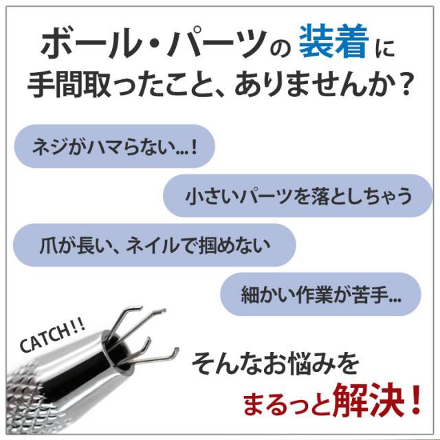 ボール、立爪パーツ、プッシュピンパーツなど、小さいパーツを軸に取り付けるのに苦労している方必見。 パーツを掴むマジックハンドツールの登場です。 メディカルツール等にも使用されている安全性の高い医療用ステンレス製。