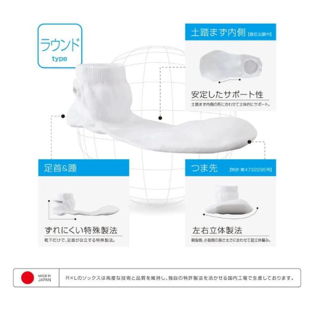 | 特徴 | 蓄積された経験と最新技術の融合で『 素足感覚と耐久性 』を 高次元で実現。 R×L EVO定番モデルから2cm丈をプラスしたミッドモデル。 走り心地と耐久性をマッチさせた5本指ソックスの誕生! ショート丈モデルから+3.5cm ミッド丈はショート丈FSGモデルから+3.5cm くるぶしが隠れるから真冬のレースでも足首が寒くなりません。 つま先左右別立体設計 親指側、小指側の指の長さ太さに合わせて超立体編み。 足首直角立体設計 ずれにくい特殊製法。靴下だけで、足首が自立する特殊製法。 |