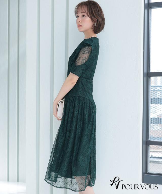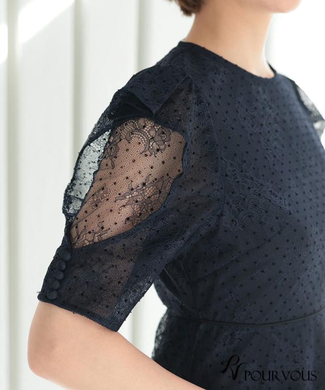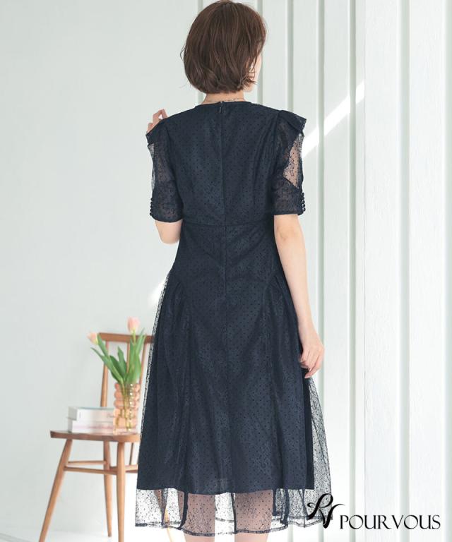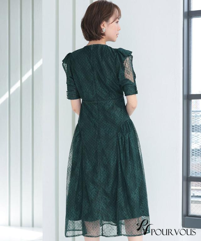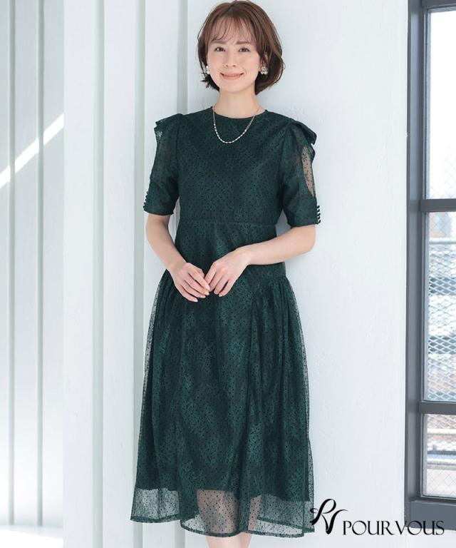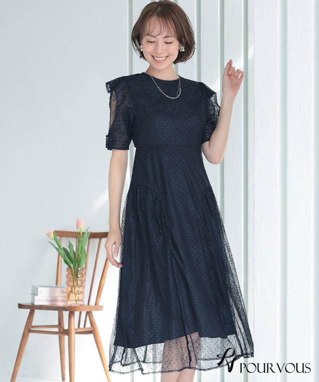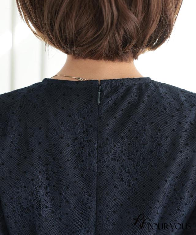 フロッキードットレースドレス【717231322】20代・30代・40代・54代長袖・膝丈・セットアップ・スカート・体型カバー・ジャケット・テーラード・スーツ・大きいサイズなど・即日発送・送料無料結婚式・婚活・披露宴・顔合わせ・二次会・同窓会・お呼ばれ・食事会・謝恩会・親族・七五三・お宮参り・冠婚葬祭・弔事・女子会・デート・入学式・卒業式・入園式・卒園式・ママ・マタニティー・セレモニー・セレブ・パーティー