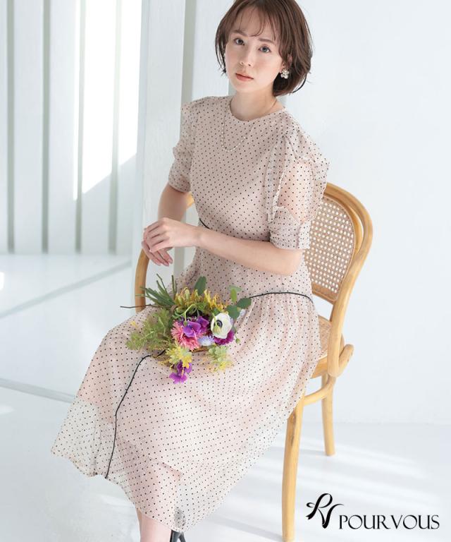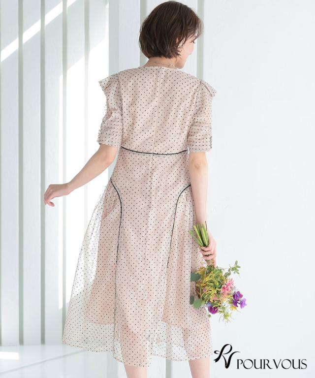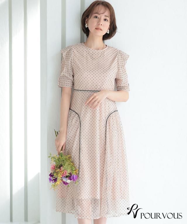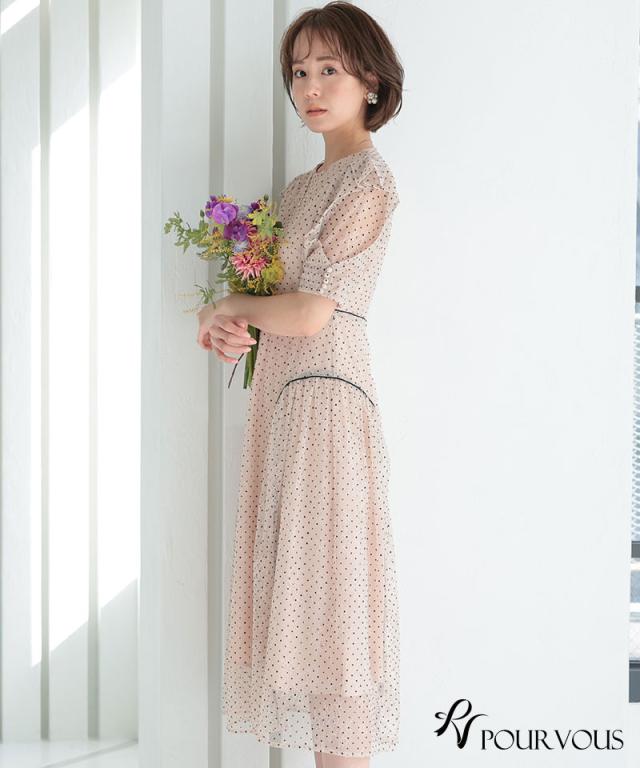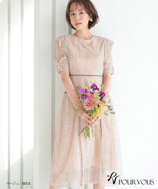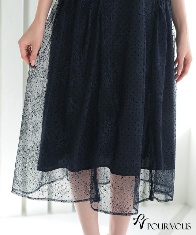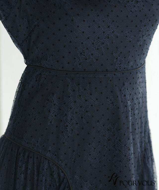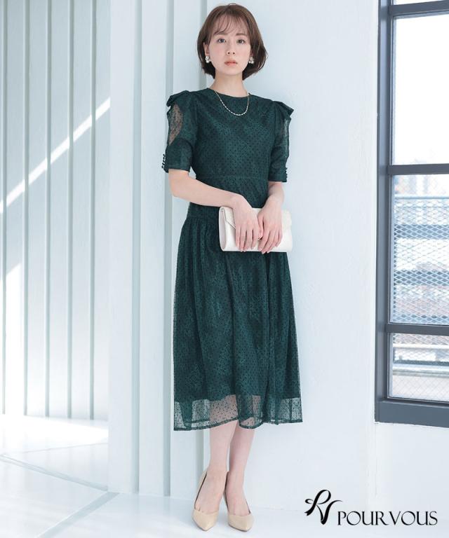 フロッキードットレースドレス【717231322】20代・30代・40代・54代長袖・膝丈・セットアップ・スカート・体型カバー・ジャケット・テーラード・スーツ・大きいサイズなど・即日発送・送料無料結婚式・婚活・披露宴・顔合わせ・二次会・同窓会・お呼ばれ・食事会・謝恩会・親族・七五三・お宮参り・冠婚葬祭・弔事・女子会・デート・入学式・卒業式・入園式・卒園式・ママ・マタニティー・セレモニー・セレブ・パーティー