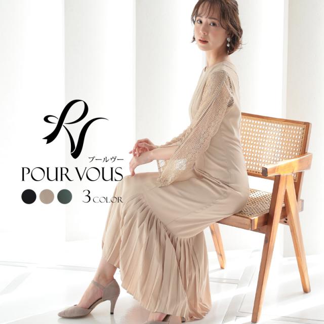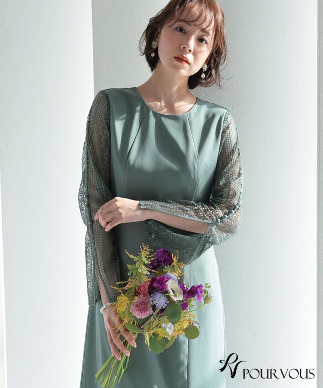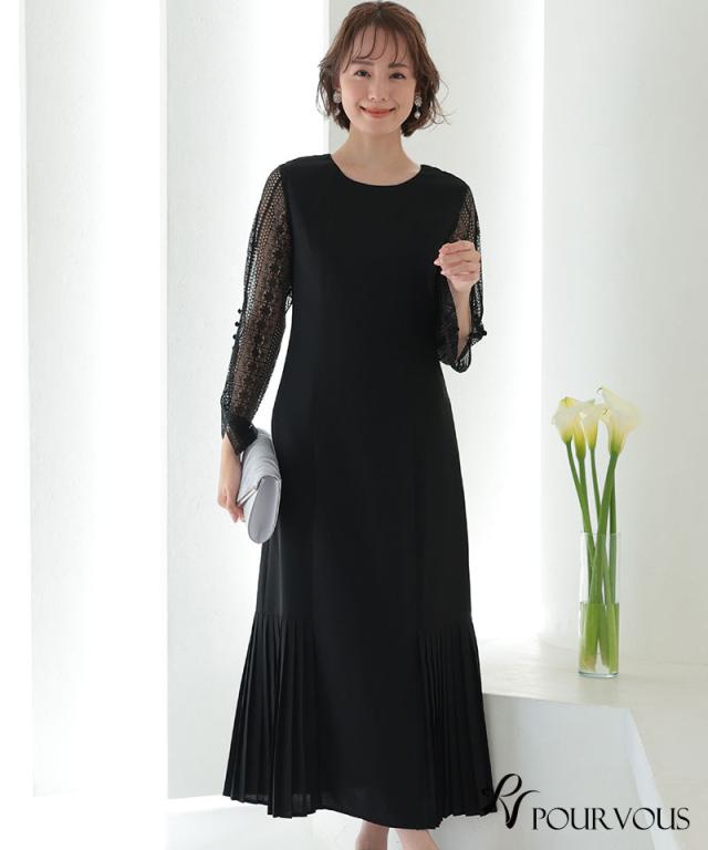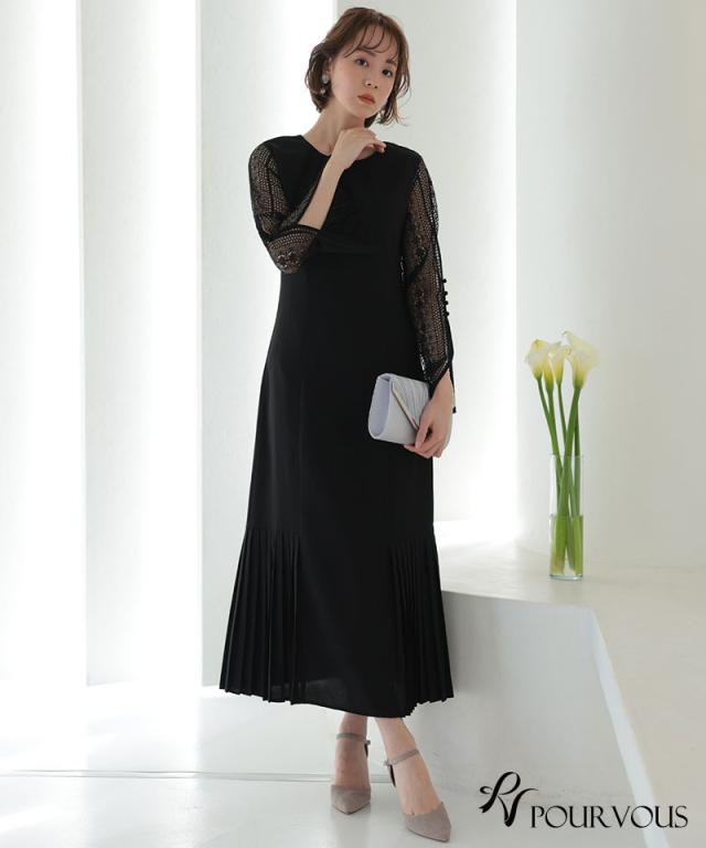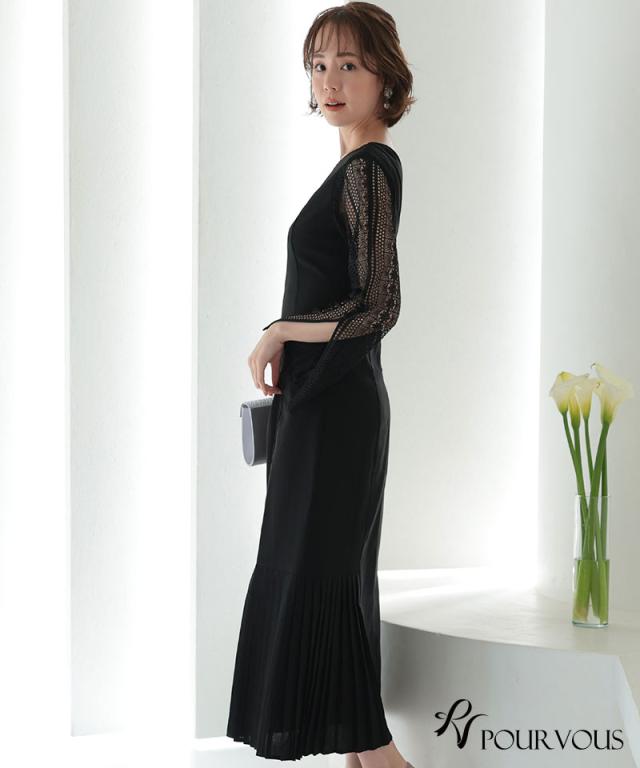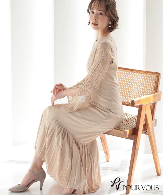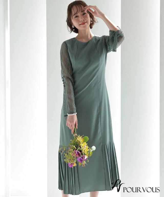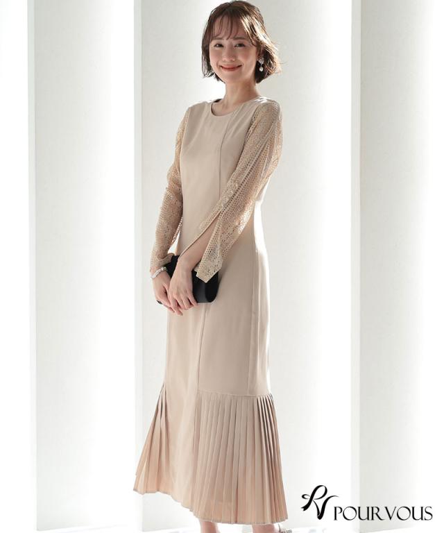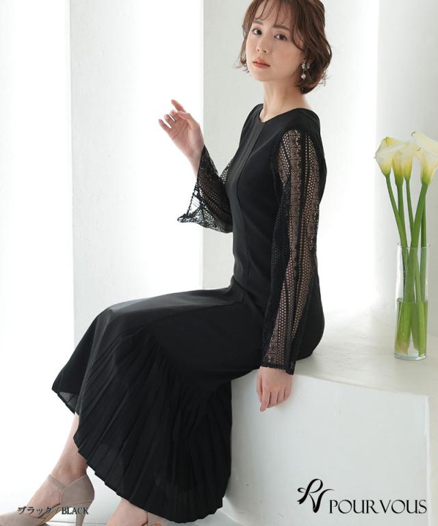 レーススリーブプリーツ切替マーメイドワンピース【619231322】20代・30代・40代・54代長袖・膝丈・セットアップ・スカート・体型カバー・ジャケット・テーラード・スーツ・大きいサイズなど・即日発送・送料無料結婚式・婚活・披露宴・顔合わせ・二次会・同窓会・お呼ばれ・食事会・謝恩会・親族・七五三・お宮参り・冠婚葬祭・弔事・女子会・デート・入学式・卒業式・入園式・卒園式・ママ・マタニティー・セレモニー・セレブ・パーティー