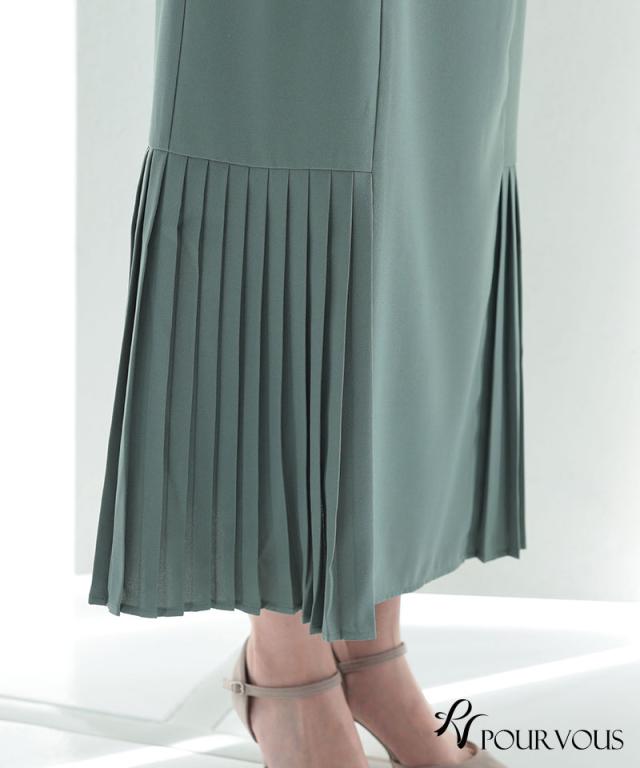 裾のプリーツ加工が揺れるたびに広がり、優しい雰囲気にしてくれます。
