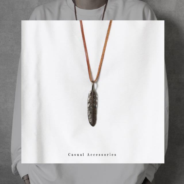 不動の人気を誇るフェザー型のペンダントトップを使用し、本革ストラップと組み合わせることで絶妙な抜け感を演出。いつものカジュアルスタイルに一味加えてくれます。