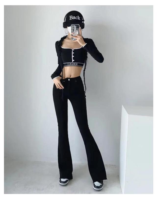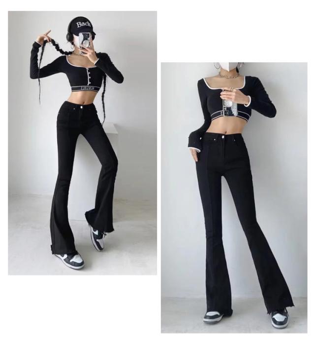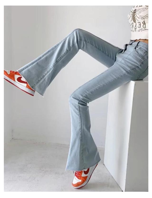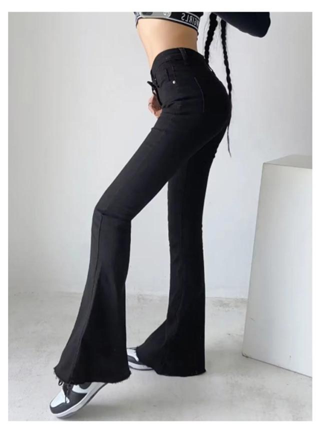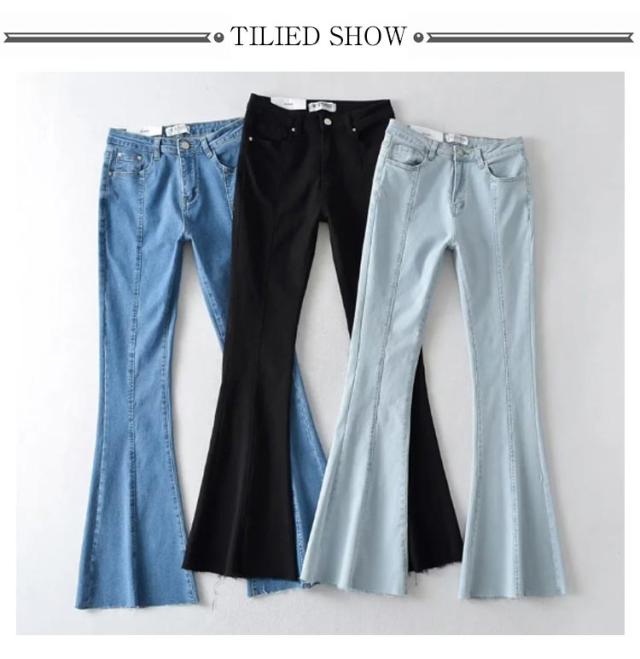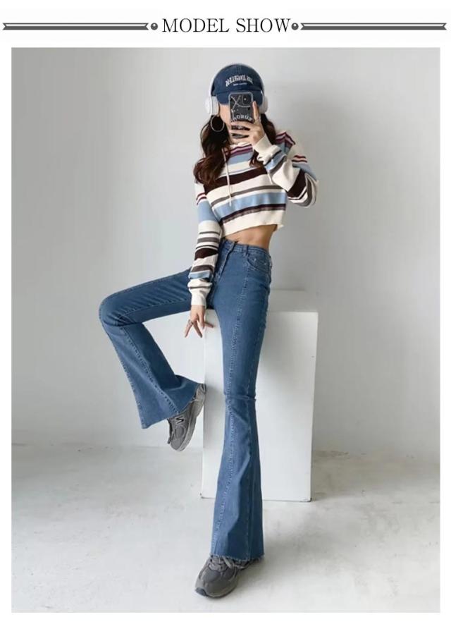 フレアパンツ デニムパンツ レディース カットオフ ストレッチ 美脚ライン 脚長効果 スリム 細身シルエット タイト ボトムス 裾切りっぱなし オールシーズン 無地 全3色