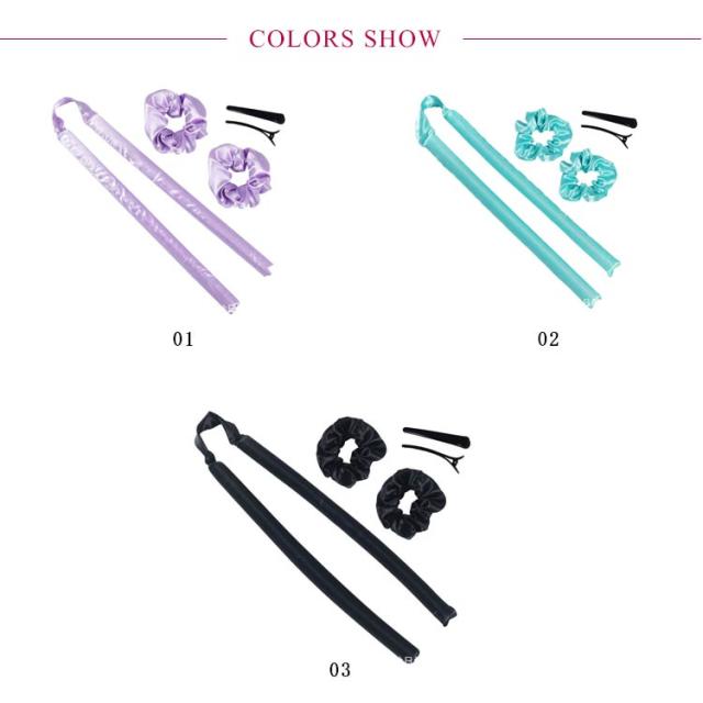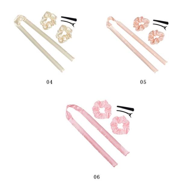 3点セット 手巻きカーラー ヘアカーラー ヒートレス カールバンド 髪カール カーリングロッド スタイリング 熱を使わない ヘアローラー シュシュ2個 ノンヒートカール ヒートレスカール 寝ながら ヘッドバンド ロングヘア レディース 送料無料