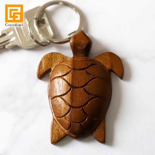 木製キーリング(ウミガメ) メール便対応可 ※カニカン付き ウミガメ キーホルダー 木製 特別感 ガムランボール 通販