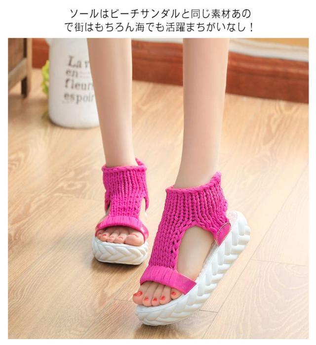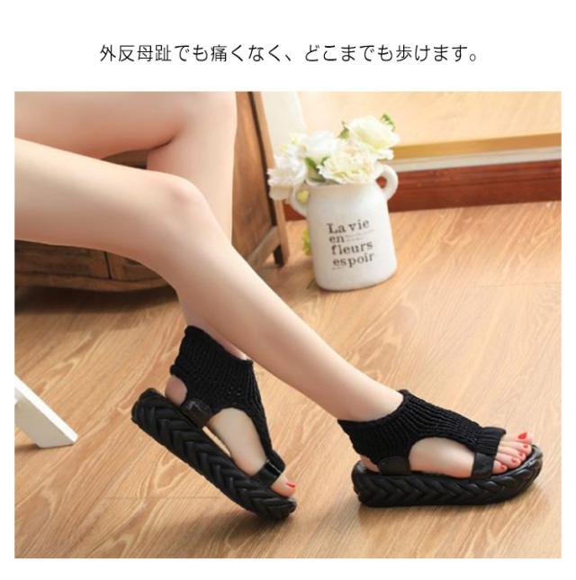 | 歩きやすい厚底サンダル。軽い!疲れない! ソールはビーチサンダルと同じ素材あので街はもちろん海でも活躍まちがいなし! ビーチサンダルに使われているEVAフォームの厚底なのでビーチでもOK。 足首は締め付けすぎないホールド感。とても歩きやすいので、長く歩いても疲れません。 編み糸はTシャツ生地!だから蒸れない!肌ざわりがよくて気持ちいい◎ 編んだ部分はPVC(合成皮革)でとめていて、思った以上に丈夫です。 軽い!!水に浮きます。だから疲れない! 外反母趾でも痛くなく、どこまでも歩けます。 | |