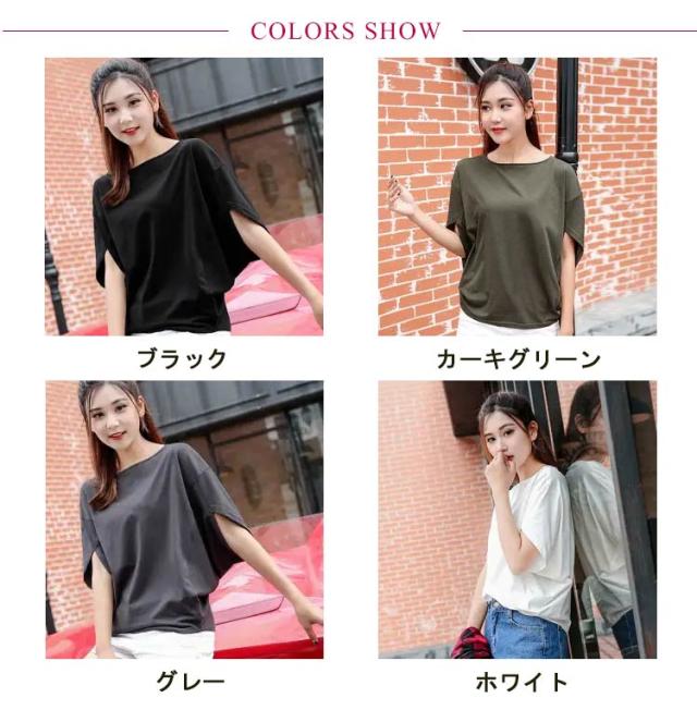 ブラウス プルオーバー レディース 春 夏 tシャツ 半袖 ドルマン ドルマン袖 ドルマンtシャツ カットソー 大人 大きいサイズ 春 きれいめ ゆるtシャツ トップス カットソー ストレッチ スウェット シンプル 上品 5分袖 体型カバー 春夏 30代 40代 50代 送料無料