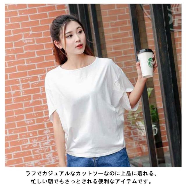 | ◆シンプルなデザインなので、合わせるボトムや小物を選びません。 ラフでカジュアルなカットソーなのに上品に着れる、忙しい朝でもさっときれる便利なアイテムです。 ◆ゆるっとしたサイジングで程よい袖丈が二の腕をカバーしてくれるので品よく着こなすことができ、 カットソー生地だから抜 群な伸縮性でとっても楽ちんな着心地。 ◆デイリーコーデに取り入れたい、マストアイテムになること間違いなしの1枚です。 | |