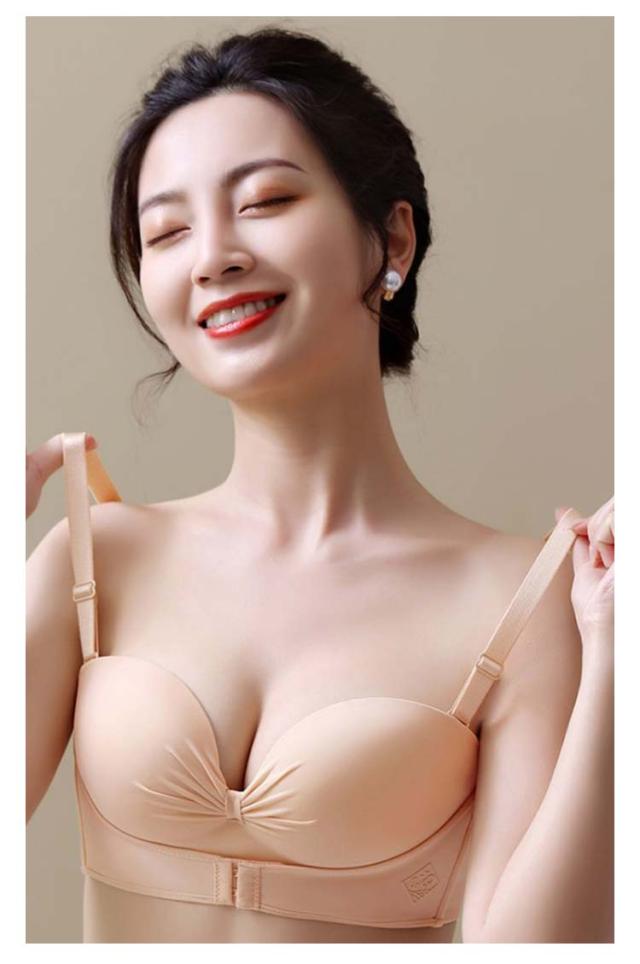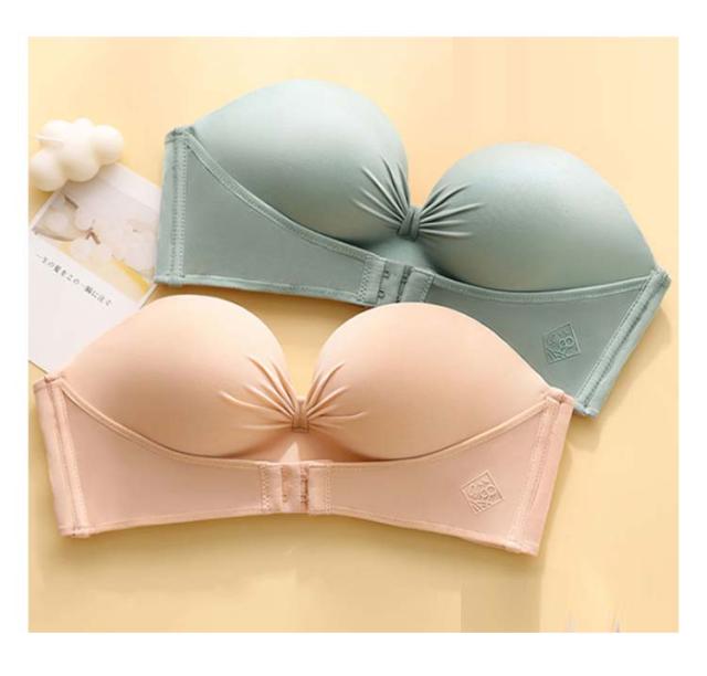 | 肩や胸元のあいたドレスに絶対おすすめ!ずれにくいのに盛れるストラップレスブラ ストラップレスだと谷間に自信が持てない…そんな時にはフロントホックで谷間をメイク! ワイヤーレスで優しい着け心地♪シームレスで響きにくく、立体カップで綺麗なシルエットに。 サイドボーンは流れがちな脇肉をバストへ、アンダーベルトはバストを上向きに補正します ぴったり張り付く感じがないので、ヌーブラが苦手な人にも◎ オフショルダーやドレスにはもちろん、 日常使いにもオススメです。 | |