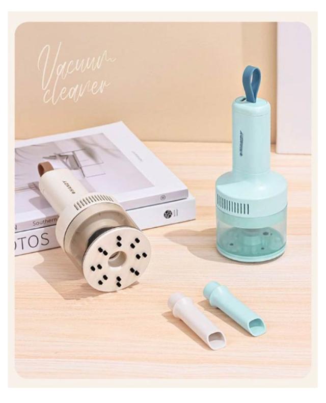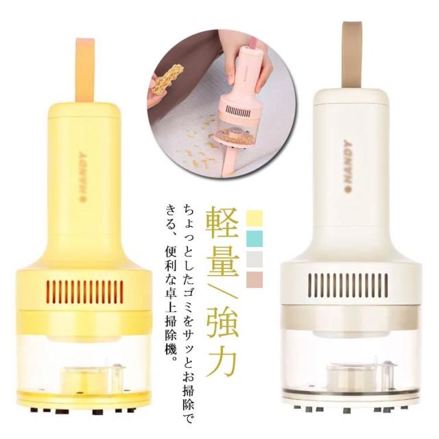 | ちょっとしたゴミをサッとお掃除できる、便利な卓上掃除機。 下部からゴミを吸い取り、吸引力抜群 ・様々なシーンに対応し気軽にお掃除。 食べこぼしたお菓子や、勉強中に出る散らばった消しゴムの消しかす。 べかすもすぐに吸ってテーブルも綺麗に、お子様の遊んだ後の簡単なお掃除に役立つ。 デスクに置いてあっても掃除機らしくない、お洒落なデザインです。 大きな掃除機を出すほどではない小さなゴミやデスクや隙間の掃除などにも大活躍間違いなし! | |