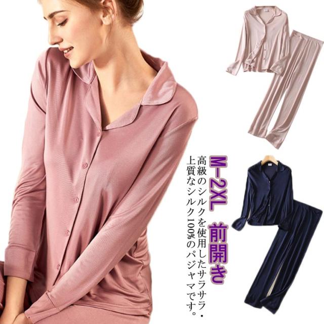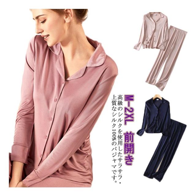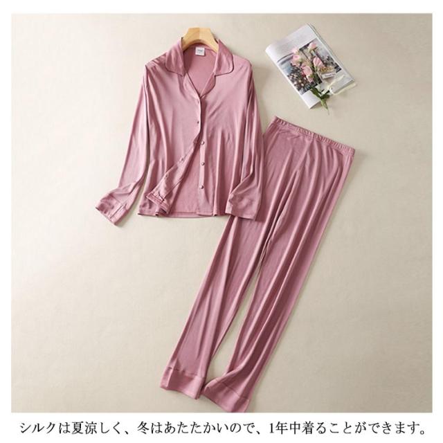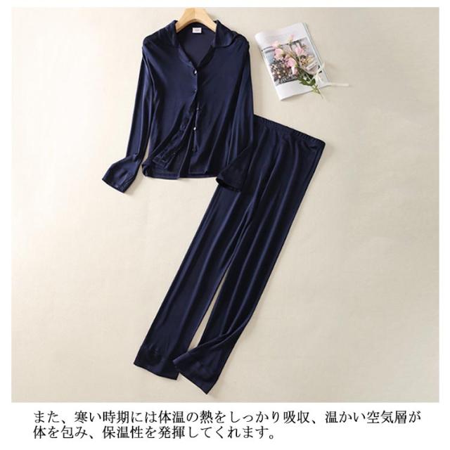 シルクパジャマ 上下セット 前開き シルク100% レディース 部屋着 クリスマス シルク パジャマ シルク生地 絹100% ルームウェア リラックス 紺 リラックスウェア パンツ 長ズボン ウエストゴム セパレート 母の日 敬老の日 高級感 ギフト プレゼント