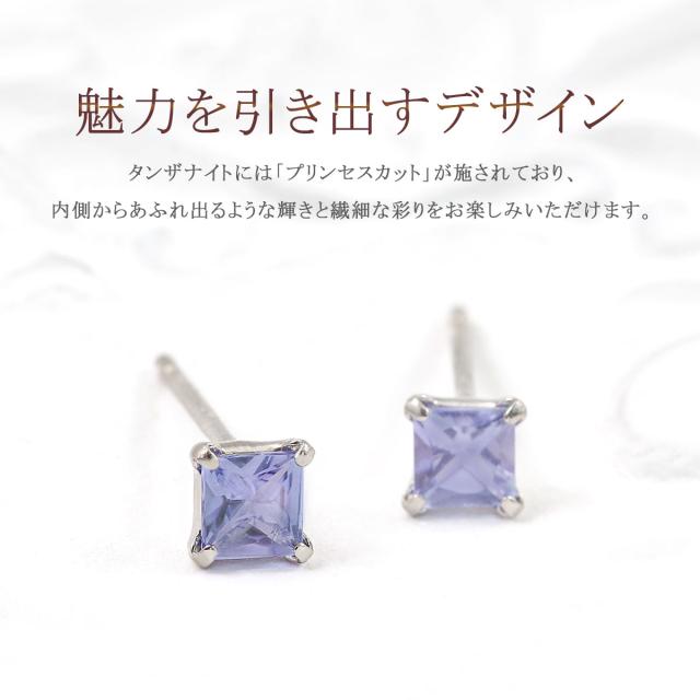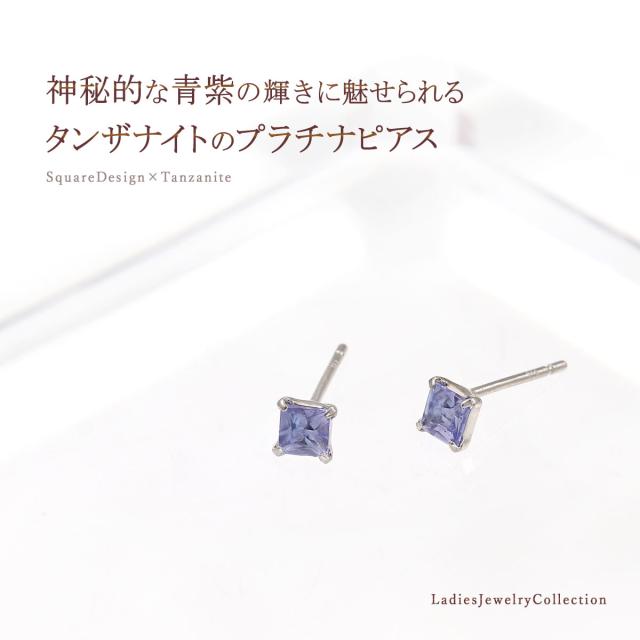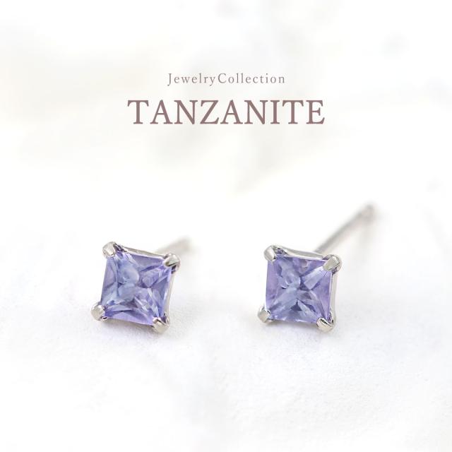 タンザナイト ピアス シンプル プラチナ ジュエリー レディース 小ぶり プチピアス スタッド スクエア 四角形 正方形 宝石 プレゼント お誕生日 12月 誕生石 小さい 小粒 小振り 小さめ 一粒 おしゃれ 青 紫 宝石 天然 本物 天然石 女性 彼女 可愛い クリスマス プレゼント