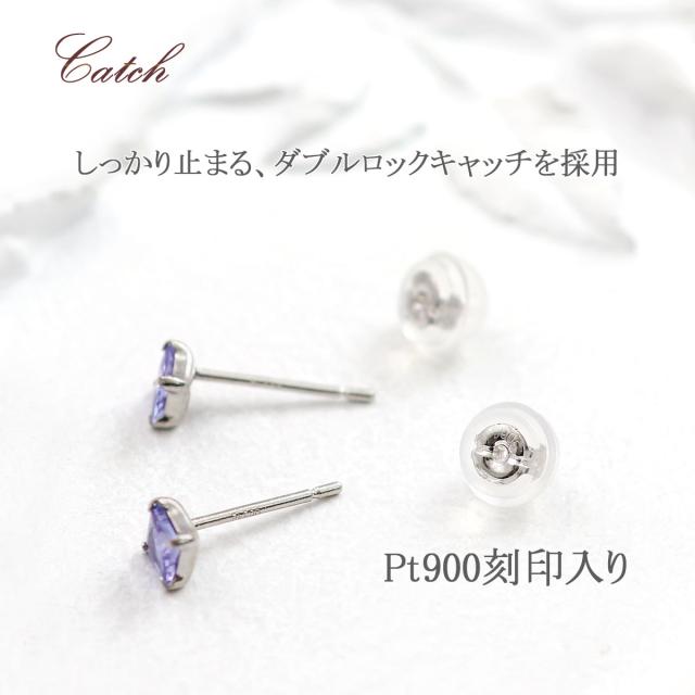 | 地金・素材 | ・タンザナイト トータル0.26ct プリンセスカット ・地金:プラチナ Pt900 ・ダブルロック キャッチ ※刻印箇所等は画像と異なる場合がございます。 |