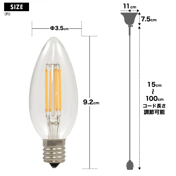 ■位相式調光器に対応!一般電球40W形相当フィラメント型LED電球付き