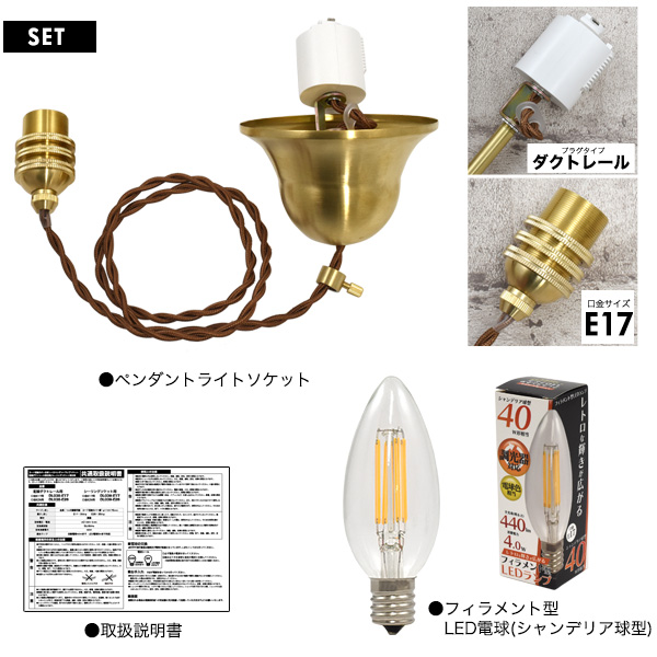 ペンダントライト E17 1灯 ビンテージ風 吊り下げ 照明器具 シャンデリア球 LED電球付き 真鍮 ダクトレール 電球セット 裸電球 おしゃれ 照明 レールライト ダクトレール用 天井照明 吊り下げ照明 レトロかわいい おしゃれ照明 器具 アンティーク調 スポットライト器具