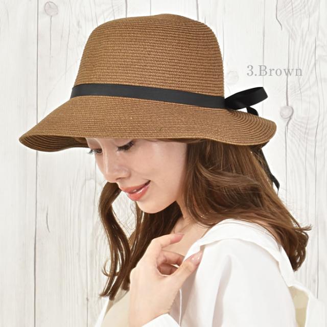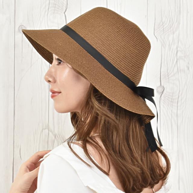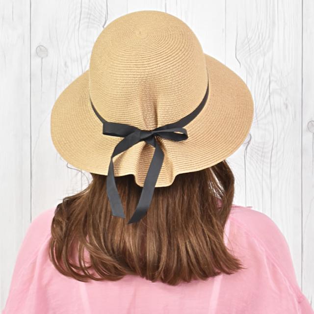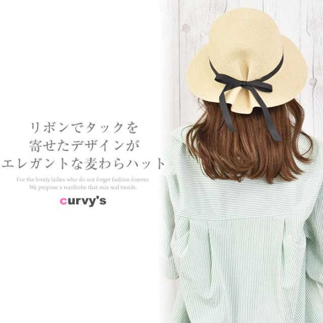 麦わら つば広 レディース 宅配便配送 ペーパー リボン タック 紫外線対策 日よけ 日焼け対策 ハット 帽子 おしゃれ ナチュラル かわいい 大人 タックリボン麦わらハット