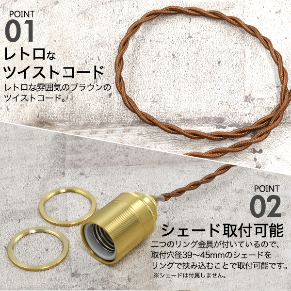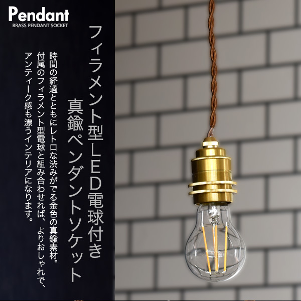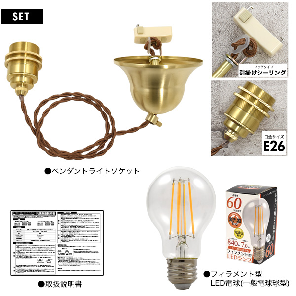 ペンダントライト E26 1灯 ビンテージ風 吊り下げ 照明器具 一般電球型 LED電球付き 真鍮 引掛けシーリング 電球セット 裸電球 お洒落 照明 レールライト ダクトレール用 天井照明 吊り下げ照明 レトロかわいい おしゃれ照明 器具 アンティーク調 スポットライト器具