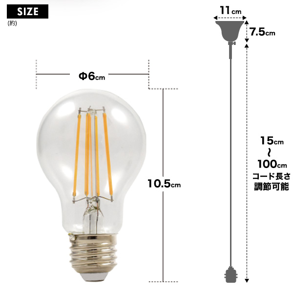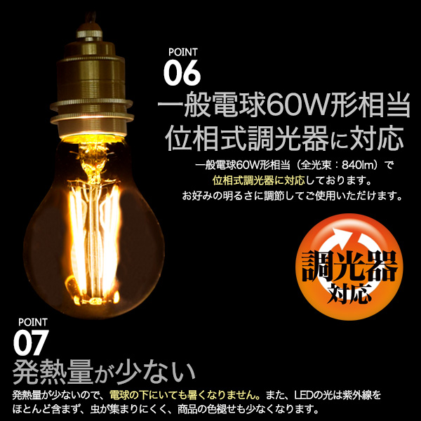 ■位相式調光器に対応!一般電球60W形相当フィラメント型LED電球付き
