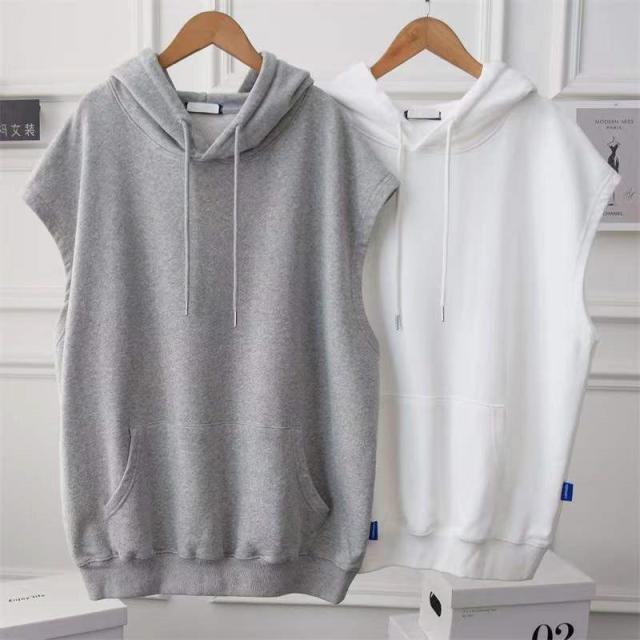 ベスト レディース 夏服 袖なし プルオーバー ジレ ノースリーブ フード付き ゆったり トレーナーパーカー 重ね着 レイヤード
