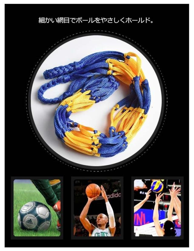 | 高品質にこだわったボールネット 手触りが柔らかく持ち運びしやすいから小さいお子様でも使える。 強度と耐久性に優れた素材を使用。 高密度な編み込みロープを使用し耐荷重性もバツグン。 細かい網目でボールをやさしくホールド。 汚れにくく色落ちもしにくい。 明るいカラーバリエーションで野外や夕方でも見つけやすい。 | |
