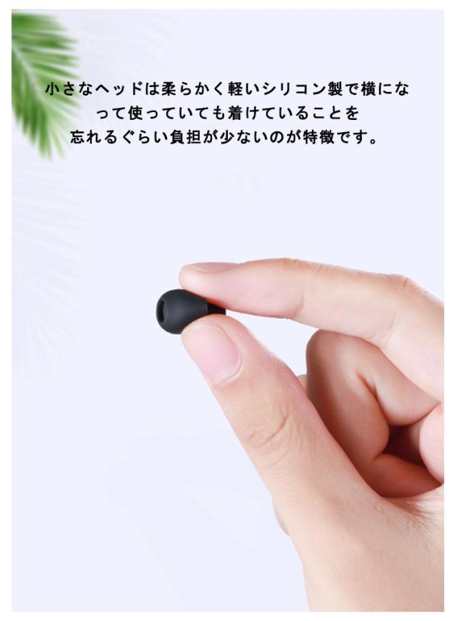 | 寝ながら聴いても耳が痛くなりにくい柔らかいイヤホンです。 小さなヘッドは柔らかく軽いシリコン製で横になって使っていても着けていることを忘れるぐらい負担が少ないのが特徴です。 コンパクトでわずか1gと、とても軽量です。 超小型インイヤー式で寝転んだ体勢でも耳に負担がかかりません。 内側からの音漏れはもちろん、外側からのノイズをしっかりカット。 周囲の音に気を取られずに通話をしたり、家族のイビキに悩まされる事なく快適に音楽を楽しむことができます。 | |
