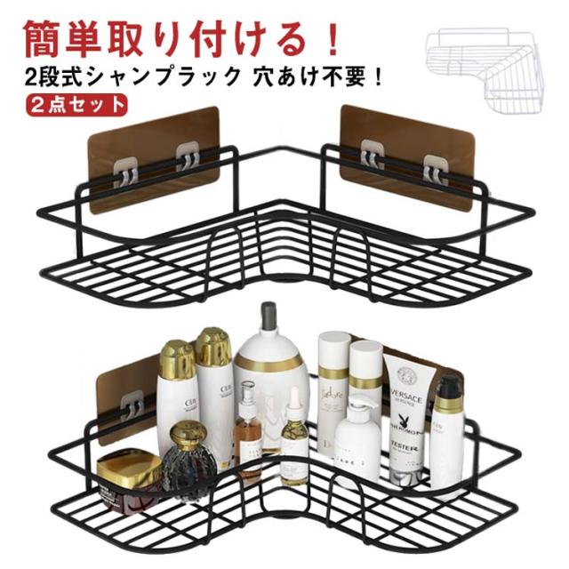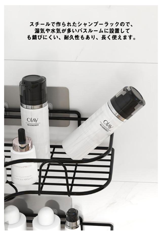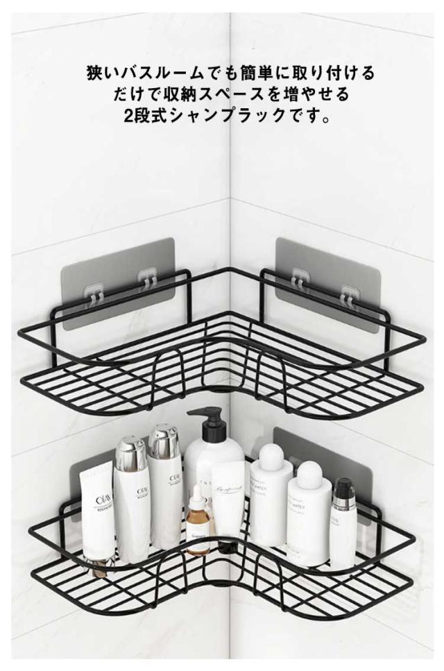 送料無料 浴室収納 お風呂 浴室ラック ラック シャンプーラック 台所収納 2点セット シャワーラック おしゃれ 2段 ラック 穴あけ不要 コーナーラック 大容量 洗面所収納 取り外し可能 強力粘着 お風呂の壁に スチール バスルーム 収納