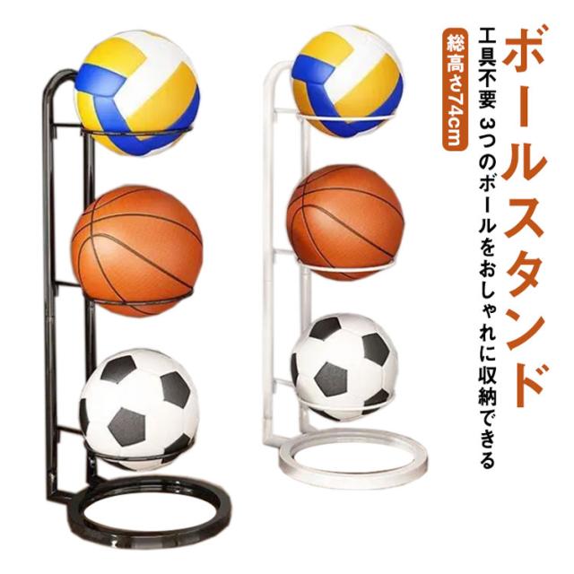 送料無料 ボール 収納 ボールラック ボールスタンド 玄関 高さ73 サッカーボール ボール カゴ バスケットボール ボールタワー ボールカゴ 玄関収納 片付け ボール整理カゴ 省スペース 黒 白 全2色 3つのボール収納できる