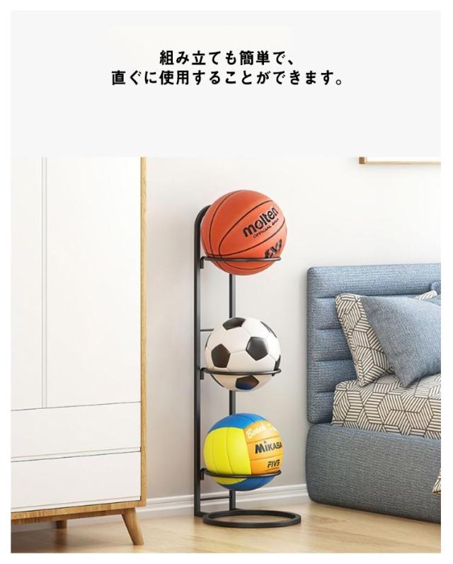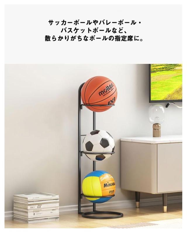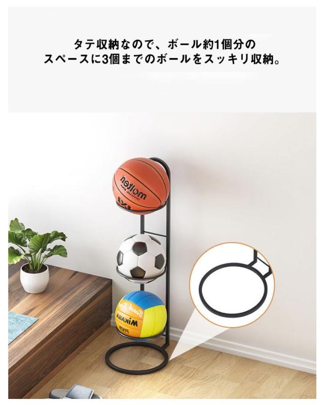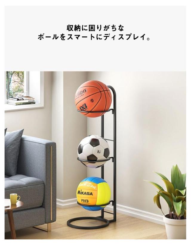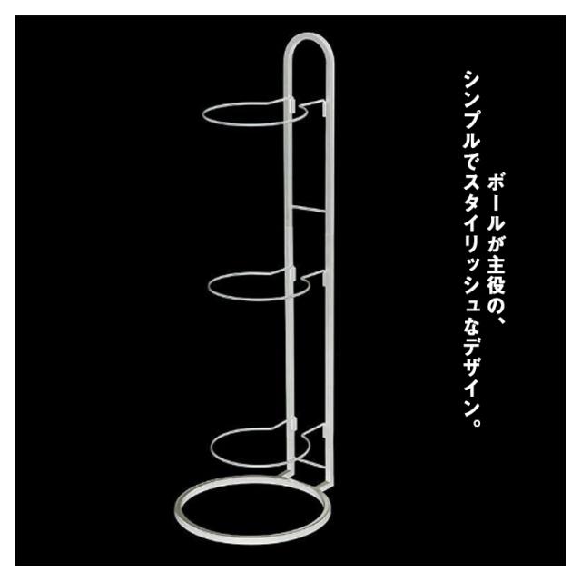 | ボールスタンド 工具不要 3つのボールをおしゃれに収納できる 収納に困りがちなボールをスマートにディスプレイ。 サッカーボールやバレーボール・バスケットボールなど、散らかりがちなボールの指定席に。 組み立ても簡単で、直ぐに使用することができます。 装着にはネジとツールの必要がなく、部品を組み合わせて使えます。 タテ収納なので、ボール約1個分のスペースに3個までのボールをスッキリ収納。 玄関やリビング・ガレージなどに転がっていたボールがすっきり片付きます。 ボールが主役の、シンプルでスタイリッシュなデザイン。 | |