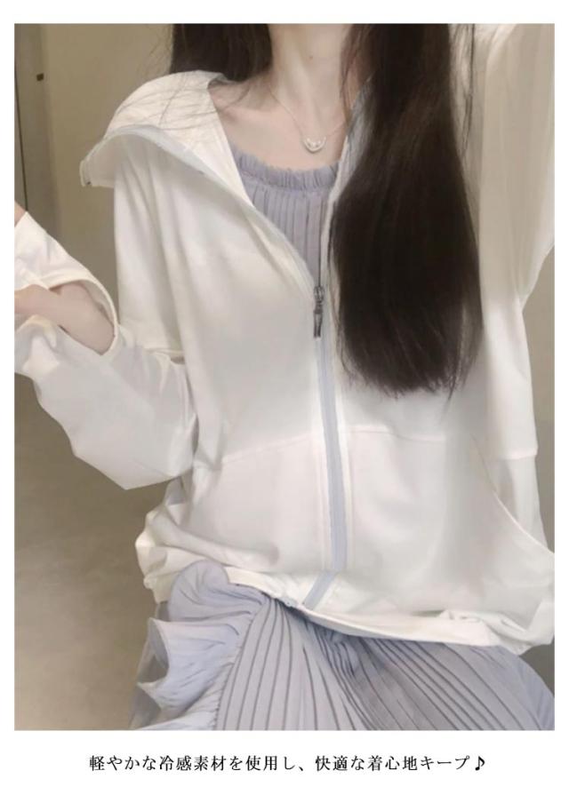 | 紫外線が強く真夏には欠かせないUV対策パーカー。 軽やかな冷感素材を使用し、快適な着心地キープ♪ 生地が薄手で柔らかくなめらかで、羽織るだけで簡単UVカット。 長袖が指穴付きなので手の甲までしっかりガードできます(ホワイトAタイプのみ)。 速乾性抜群で濡れても気にならないから、海でも使いやすい!ストレッチで動きやすく、 スポーツ時にも便利!洗ってもすぐ乾くから、旅行時にも! | |