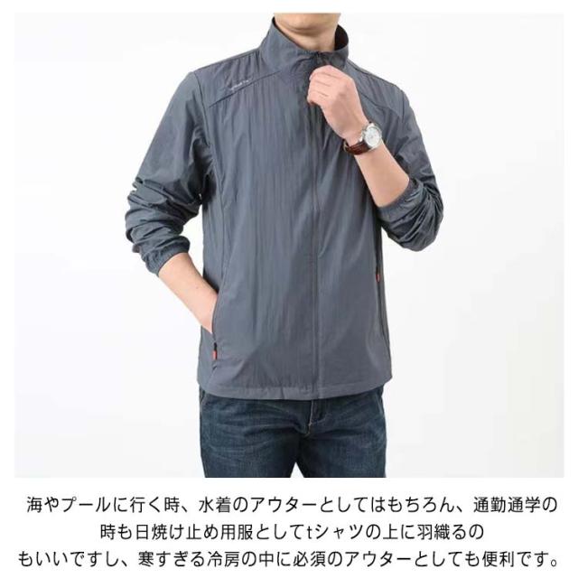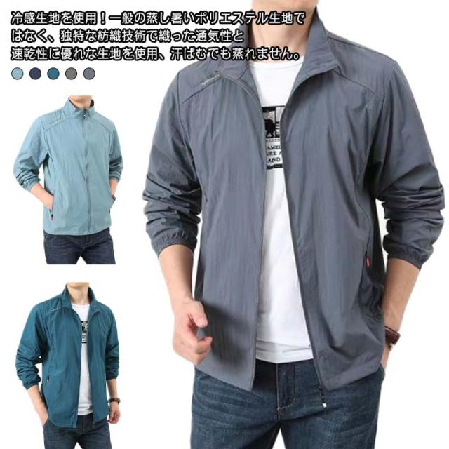 uvカット 立ち襟ジャケット 薄手 紫外線対策 伸縮性 日焼け止め パーカー フードなし 接触冷感 ラッシュガード uvカット 速乾性 メンズ 涼しい スポーツ アウトドア 夏 通学 通勤 uvパーカー