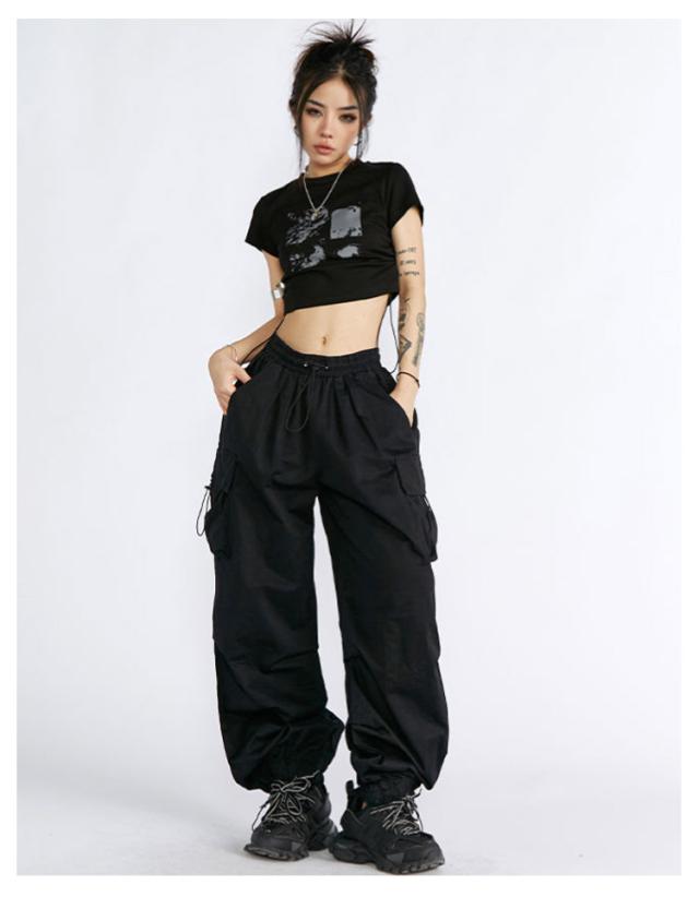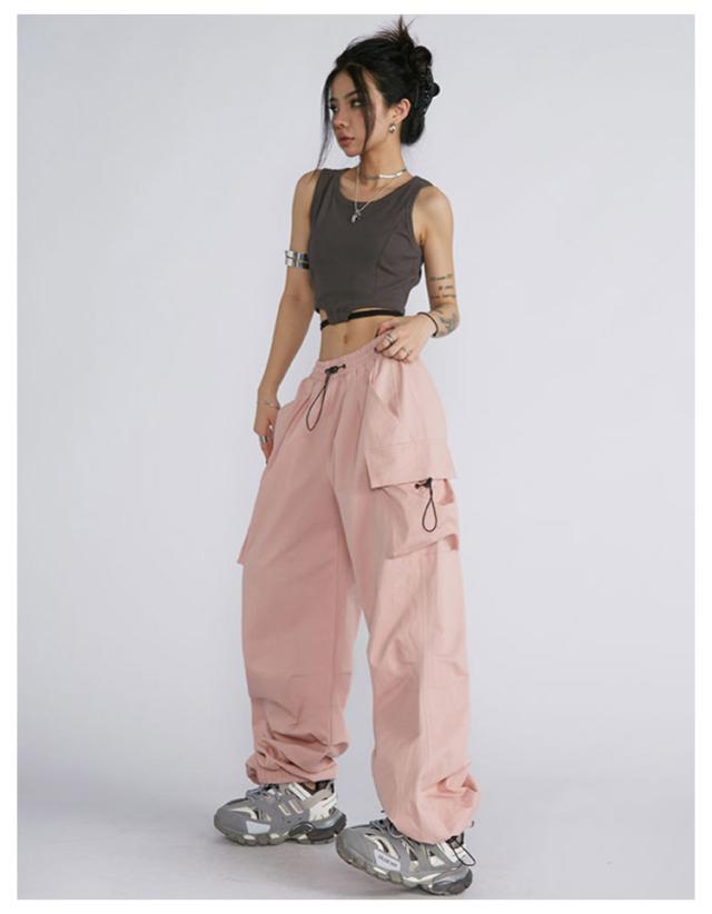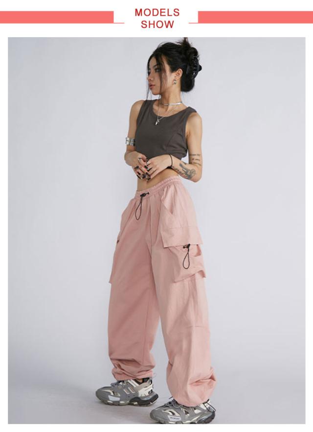 作業着 カーゴパンツ ダンサーパンツ ピンク レディース ダンス衣装 グレー ヒップホップ ストリート系 大きいサイズ おしゃれ 黒 ブラック ゆったり