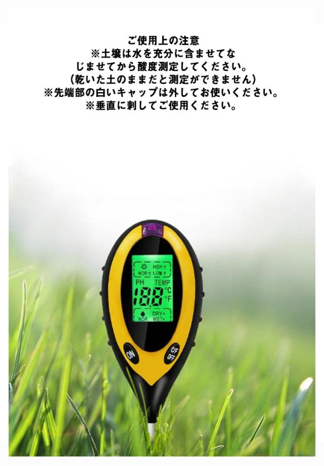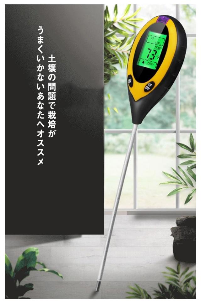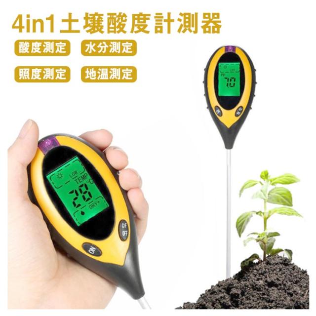 送料無料 土壌測定器 4in1 マルチ PH 温度 照度 水分 酸度 園芸 家庭菜園 栽培 初心者 植物育成 多機能 デジタル ペーハー測定器 pH計 土壌水分計 メーター 水分測定 畑 土壌テスター 照度計 土づくり 土質改善 土壌改善 差し込み式