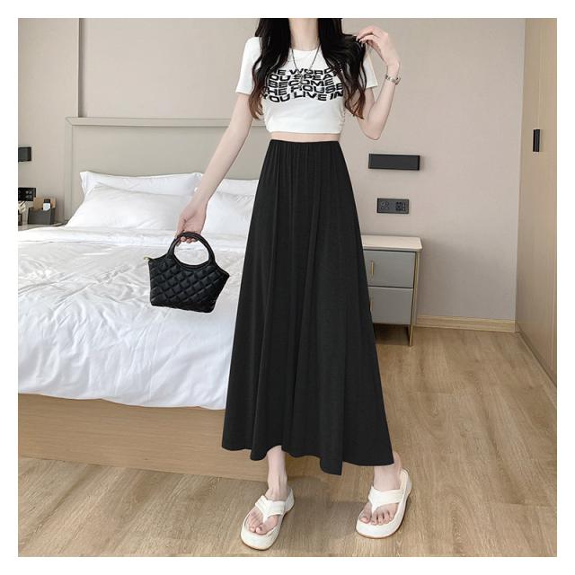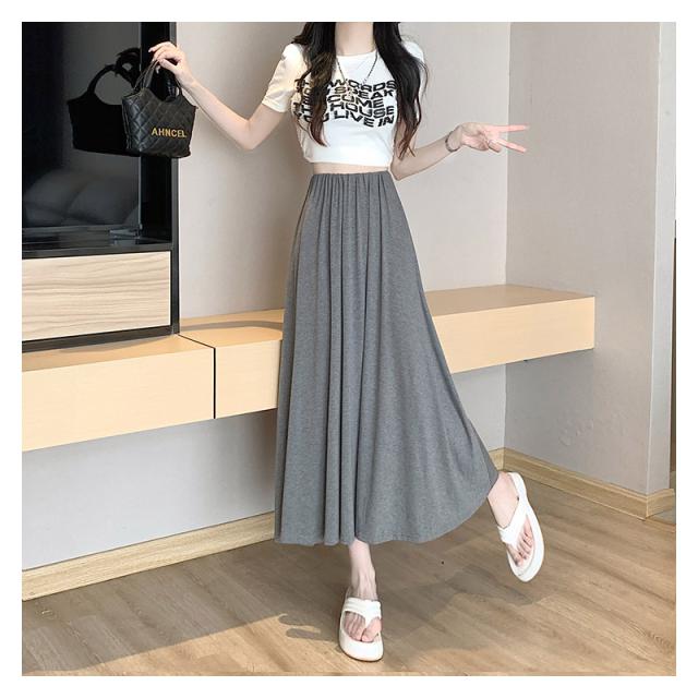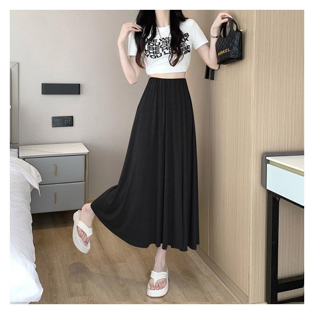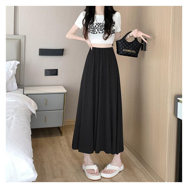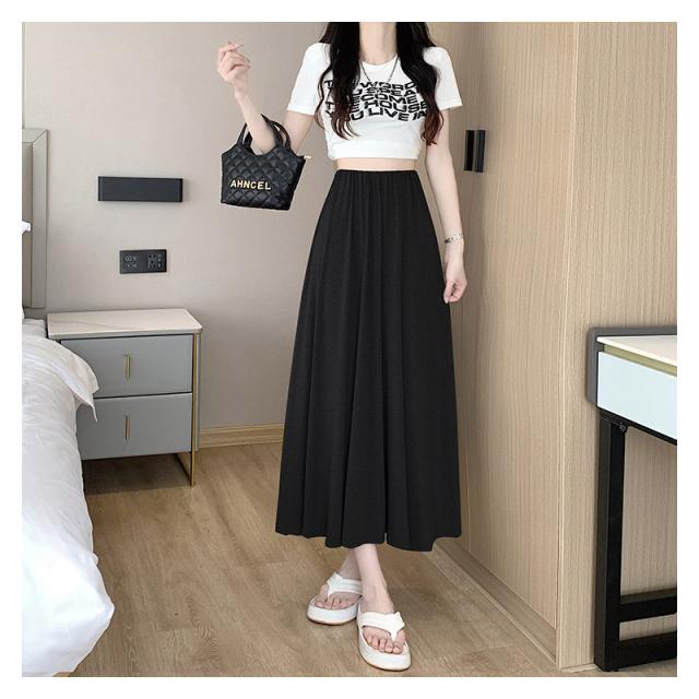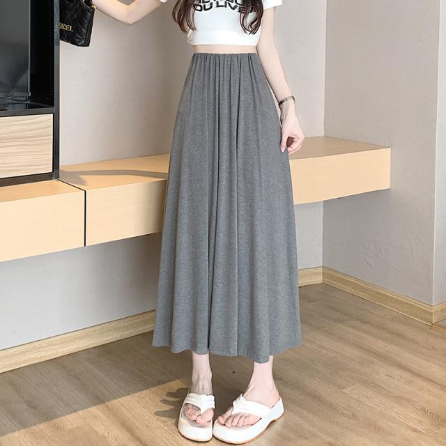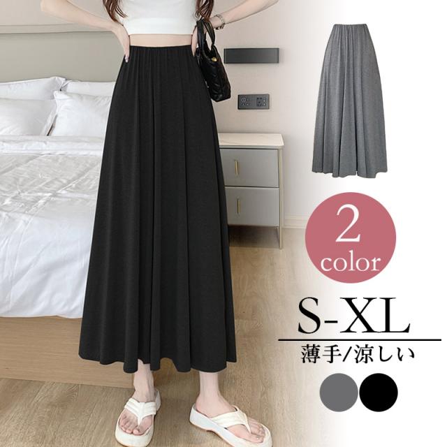 スカート Aライン ロングスカートレディース 接触冷感 フレアスカート春夏 夏用 無地ロング丈 カジュアル 薄手 ルームウェア モ