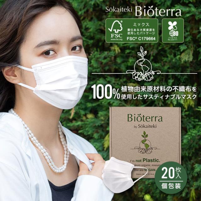 Bioterra 不織布マスク 20枚入り 個包装 プリーツマスク 不織布 ビオテラ 自然分解 SDGs 環境保護 ウイルス 花粉 PM2.5 99%カット 土に還るマスク