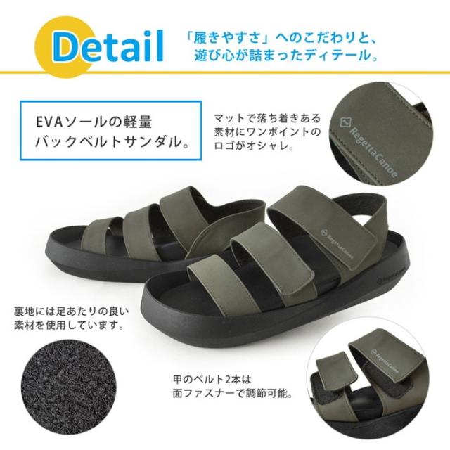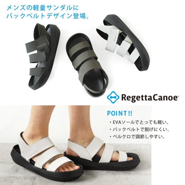 リゲッタ メンズ リゲッタカヌー バックベルトサンダル サンダル シューズ コンフォート ベルト ベルクロ ホワイト 白 ブラック 黒 カーキ 送料無料 RegetA CJEW7604