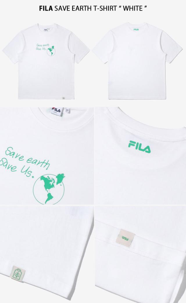 FILA フィラ Tシャツ SAVE EARTH T-SHIRT FE2RSD5105X セーブ アース T-シャツ ホワイト ロゴ 半袖 ショートスリーブ メンズ レディース 男性用 女性用