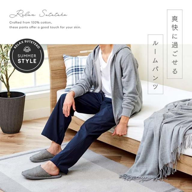リラックスステテコロング メンズ 1009819 M 無地 ネイビー 綿100% コットン パジャマ ルームウェア ルームパンツ