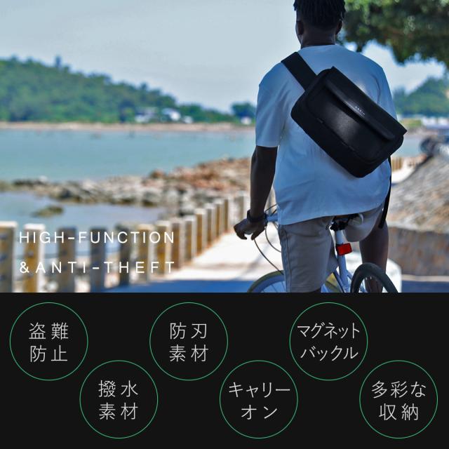 ClickSling(クリックスリング)Xには、防刃素材、YKK不正開閉防止ファスナー、撥水素材、大きなリフレクターを搭載した「毎日使える」安全設計の高機能バッグです。