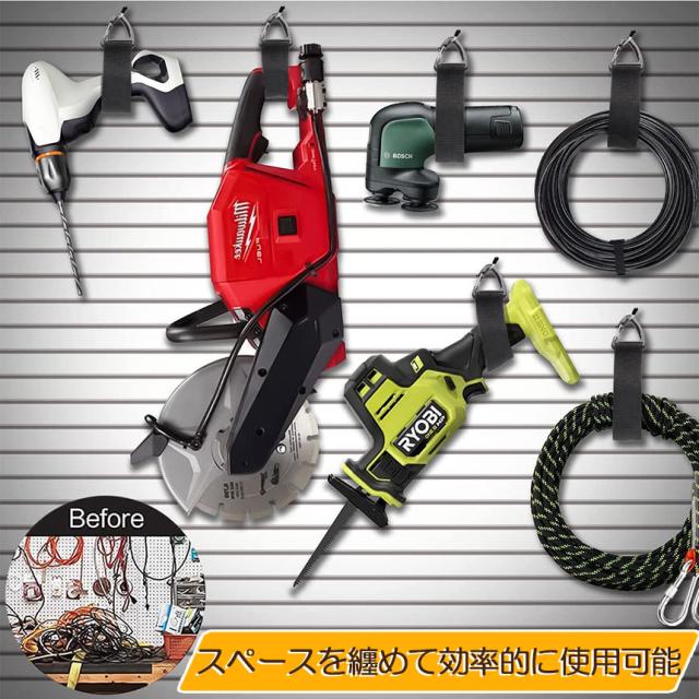 【万能】ほとんどの家庭用ケーブル、延長コード、ワイヤー、ホース、動力工具にピッタリ。この調整できる収納ストラップは、ご自宅、作業場、貯蔵庫、キャンピングカー、その他のスペースをもっと片付けて効率的にするお手伝いができます。