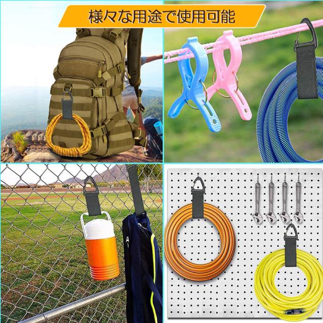 【便利な三角形のクリップデザイン】丈夫な三角形のクリップがあるので、このストラップはさらに万能です。簡単にフックや釘に掛けるワイヤーフェンス、スチールワイヤー、メタルリング、ロープなどをクリップで留めることができます。このクリップは、スペースが限られている時に、バックパックや荷物にも取り付けることが可能です。