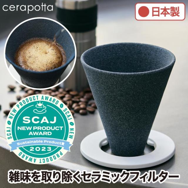 タイトル: cerapotta セラミックコーヒーフィルター | ペーパーレスエコドリッパー | 4人用 | 紙フィルター不要 | 北欧デザイン | 繰り返し使える | 日本製