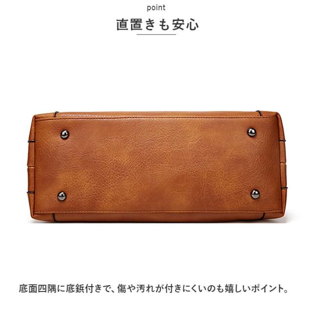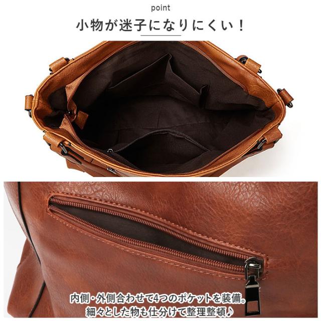 | 商品説明 | ・オン・オフ問わず活躍!シンプルなトートバッグが新登場。 【大人な仕上がり】 ・表面に手触り滑らかなPUレザー素材を使用。落ち着きのあるデザインで、ビジネスシーンやキレイめコーデにもマッチ! 【持ち方を選べる2WAYタイプ】 ・トートバッグとしてはもちろん、長さ調節可能なショルダーベルトを取り付けて、斜め掛けもOK。 【天ファスナー開口】 ・開口部は天ファスナー式。中身がこぼれ落ちにくく、プライバシーを確保。 【A4サイズ対応】 ・内側はA4サイズのファイルがすっぽり。500mlペットボトルや、お出かけに必要な小物類もひとまとめ◎ 【小物が迷子になりにくい!】 ・内側・外側合わせて4つのポケットを装備。細々とした物も仕分けて整理整頓♪ 【キーリング&チャーム】 ・鍵を取り付けできるキーリングと、アクセントになるチャーム付き。 【直置きも安心】 ・底面四隅に底鋲付きで、傷や汚れが付きにくいのも嬉しいポイント。 【ポケット仕様】 ・内側:ファスナーポケット×1、オープンポケット×2 ・背面:ファスナーポケット×1 |
