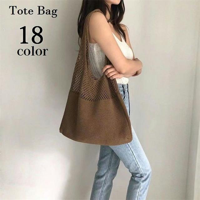 トートバッグ ニット 鞄 レディース カバン 肩掛け 手提げ 編みバッグ 女性用 婦人用 大容量 メッシュ シンプル カジュアル