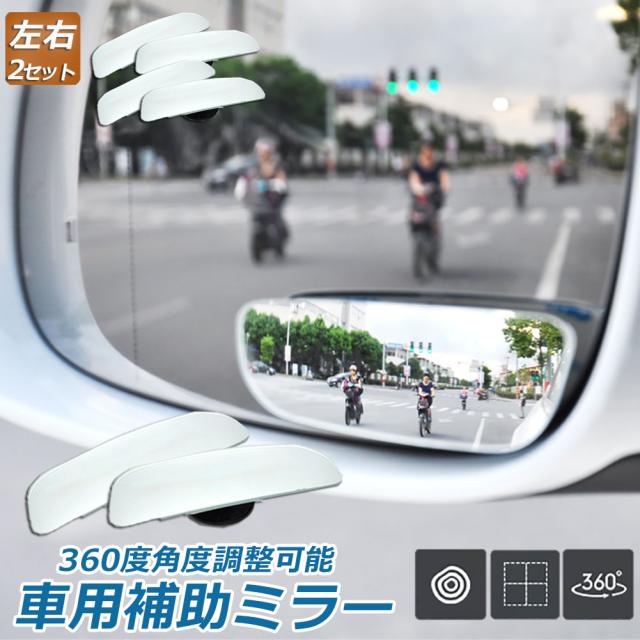 補助ミラー 車用補助ミラー ミラー サイドミラー 左右各2点セット ホワイトミラー 360度 角度調節 死角解消 広視野 サブミラー ブラインドスポットミー 後方確認 視野 小型ミラー 事故 防止 駐車 鏡 車中泊 運転 補助 安全な運転 ミラー