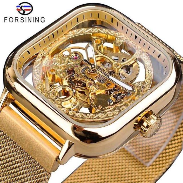 腕時計 メンズウォッチ 自動巻き 機械式 スケルトン ステンレスバンド