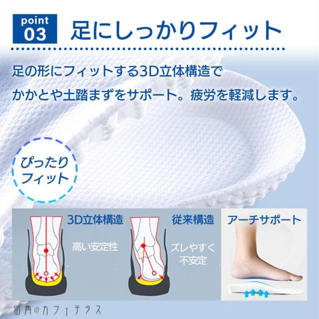 キーワード:疲れにくい アーチサポート インソール 扁平足 足底筋膜炎 にも 通気性 防臭 消臭 中敷き オシャレ 大人気 ギフト プレゼント 誕生日 結婚祝い 引越し祝い 新築祝い 還暦祝い お祝い 贈り物 父の日 母の日 敬老の日 クリスマス ハロウィン お盆 セール ランキング ブラック 黒 白 ホワイト 20代30代40代50代 春夏秋冬