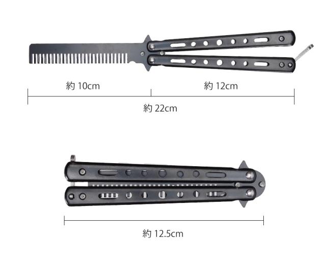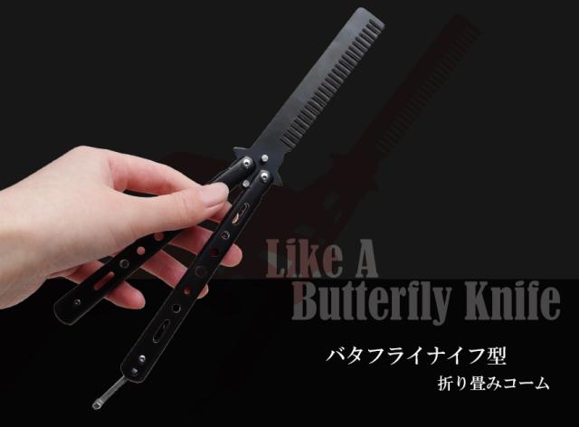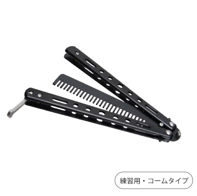 バタフライナイフ型 コーム トレーニングナイフ 練習用 刃なし 初心者 折り畳み 櫛 くし おしゃれ かっこいい ブラック 練習刀 黒 メンズ コスプレ