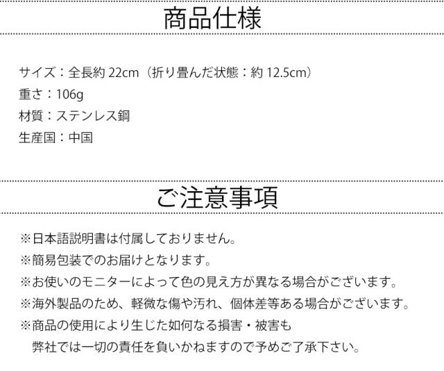 サイズ:全長約22cm(折り畳んだ状態:約12.5cm)