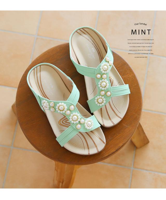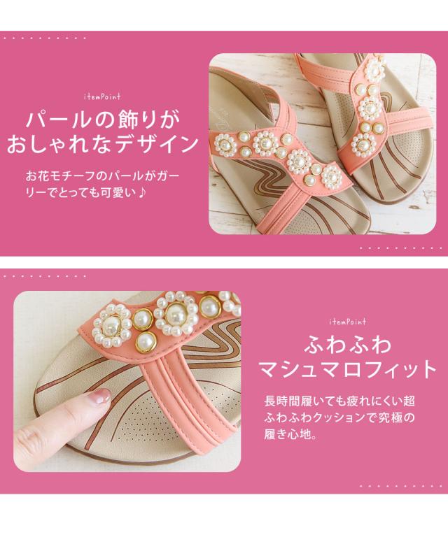 サンダル キッズ 歩きやすい フラット ぺたんこ ミュール 柔らか 軽量 リゾートサンダル シンプル スリッパ つっかけ ビーチサンダル ビーサン ビジュー かわいい 涼しい おしゃれ 痛くない パール マシュマロフィット ラヴヴィーナス Love venus 17534